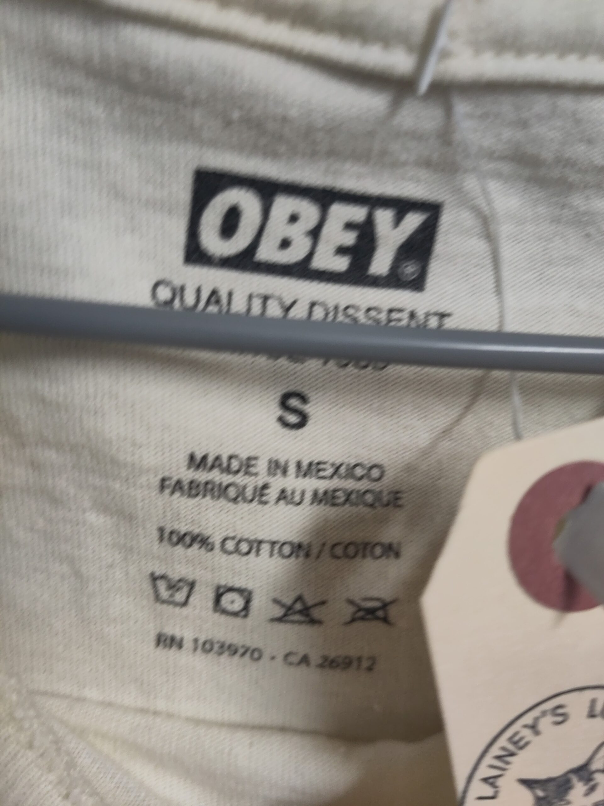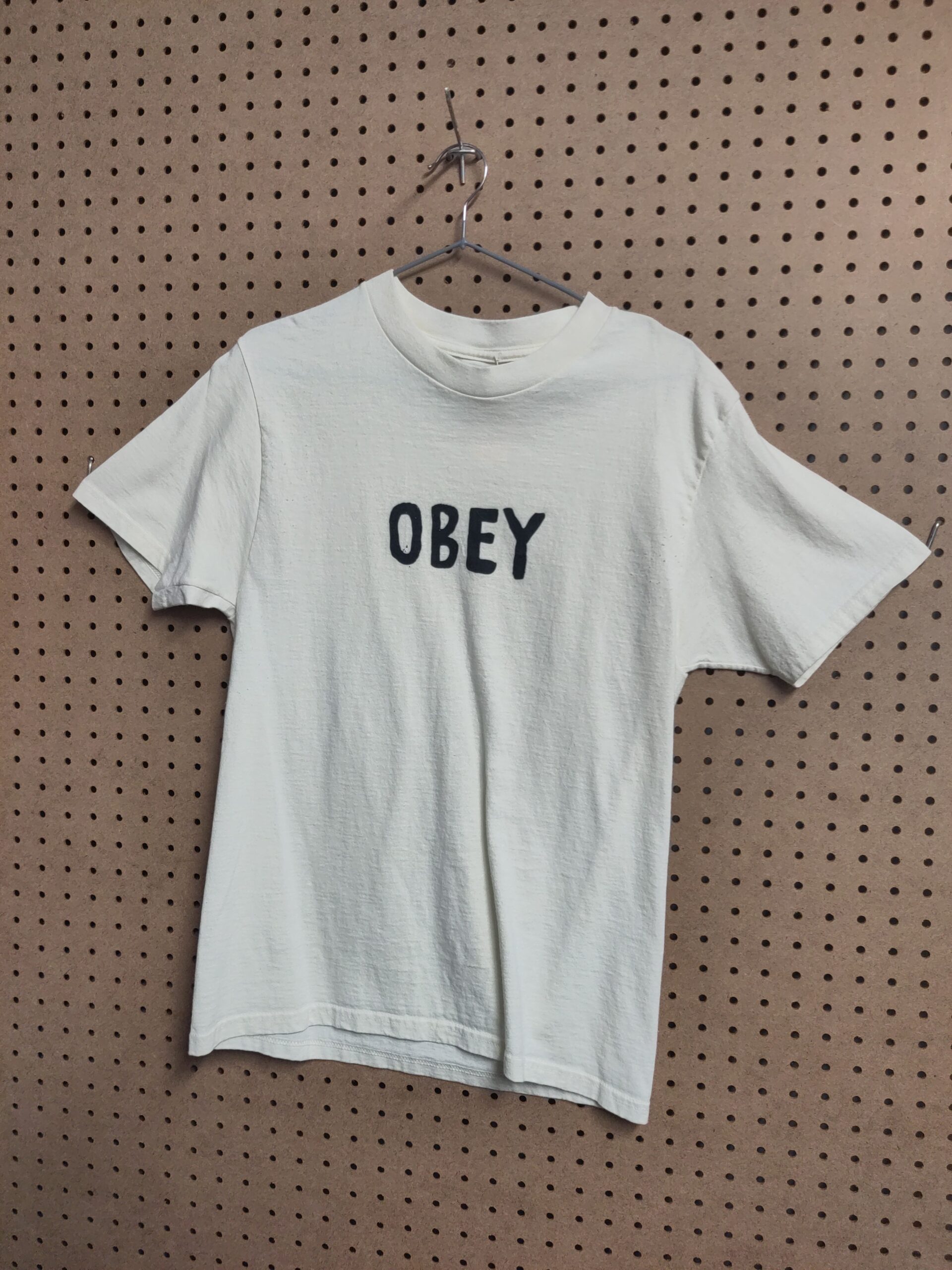 pale yellow OBEY t-shirt – approx size S – in ok condition